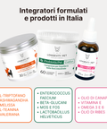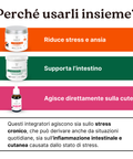 Il kit agisce alla radice del problema aiutando a ridurre lo stress, riequilibrare la flora intestinale e modulare l’infiammazione.